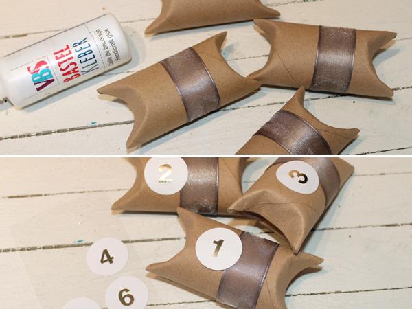 Adventskalender für Kinder einfach selber basteln aus Papprollen