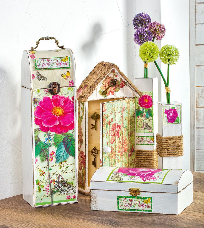 Die schützenden Lackschichten sind wichtig bei der Decoupage-Technik. Gleichzeitig sorgt der Lack dafür, dass eine ebene und glatte Oberfläche entsteht und der Höhenunterschied von Untergrund und Papier unsichtbar wird. Ein schnell trocknender Lack, der sich gut auftragen lässt, ist hier unerlässlich. Spezieller Decoupage-Lack erfüllt diese Eigenschaften am besten. Die Lacke gibt es in matter oder glänzender Ausführung.7.) Auf welchen Materialien kann ich mit Decoupage-Papieren arbeiten?