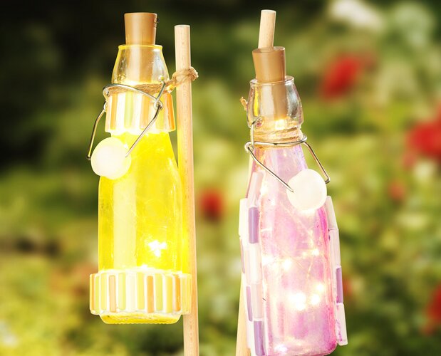 Leuchtende Glasflaschen für Garten & Balkon