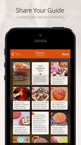 Snapguide ist irgendwie ähnlich wie Pinterest, aber der Fokus liegt mehr auf Do It Yourself statt Basteln. Aber man findet beides in reichlicher Auswahl. Was wir besonders bei dieser App mögen ist der Snapguide. Einzelne Arbeitsschritte sind einfach zu erstellen und Beschreibungen können hinzugefügt werden. Jeder kann seine Anleitungen und Ideen einfach selber zusammenstellen. Für den abenteuerlichen DIY´ler - Snapguide kann dir alles beibringen was du schon immer lernen wolltest im Bastelbereich. Leider gibt es diese App auch nur auf Englisch. Diese App bietet einen erheblichen Mehrwert für den Nutzer, animiert zum Mitmachen und stellt nicht nur ein Angebot zur Verfügung. Für diese Innovation geben wir auch 5 von 5 Punkten.