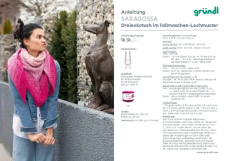 Aus einem Knäuel lässt sich ein schickes Dreieckstuch anfertigen. Hierfür befindet sich die deutsche Anleitung auf der Innenseite der Banderole, die französische und englische Anleitung ist über einen QR-Code zu finden.