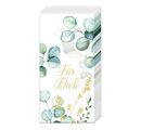 Du bist auf der Suche nach einem besonderen Bastelmaterial, um deine DIY-Projekte aufzupeppen? Dann versuch doch mal die Papiertaschentücher "Für Dich"! Das Motiv mit Eukalyptus und dem goldenen Schriftzug "Für Dich" auf weißem Hintergrund ist nicht nur hübsch anzusehen, sondern auch vielseitig einsetzbar.