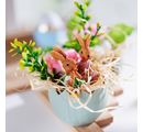 Nicht nur als Material für Körbchen sondern auch als Füllmaterial für hübsche kleine Geschenke im Glas oder Karton, kann diese Holzwolle benutzt werden. Egal zu welcher Jahreszeit können vielfältige Dekorationen damit verschönert werden. Ein wirkungsvolles Vogelhäuschen kann beispielsweise mit ein wenig Holzwolle schön in Szene gesetzt werden. Noch einige Accessoires und schon ist eine Geschenkidee entstanden. Natürlich kann die Holzwolle zur Osterzeit auch ein Nest vom Osterhasen auspolstern, damit ihm die Ostereier und Süßigkeiten nicht wegrollen.