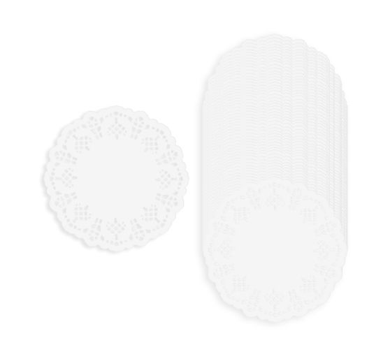 Die VBS Spitzendeckchen in Weiß sind aus Papier und praktisch für Tisch und Tafel. Sie sind mit einer Rosenbordüre gestaltet.