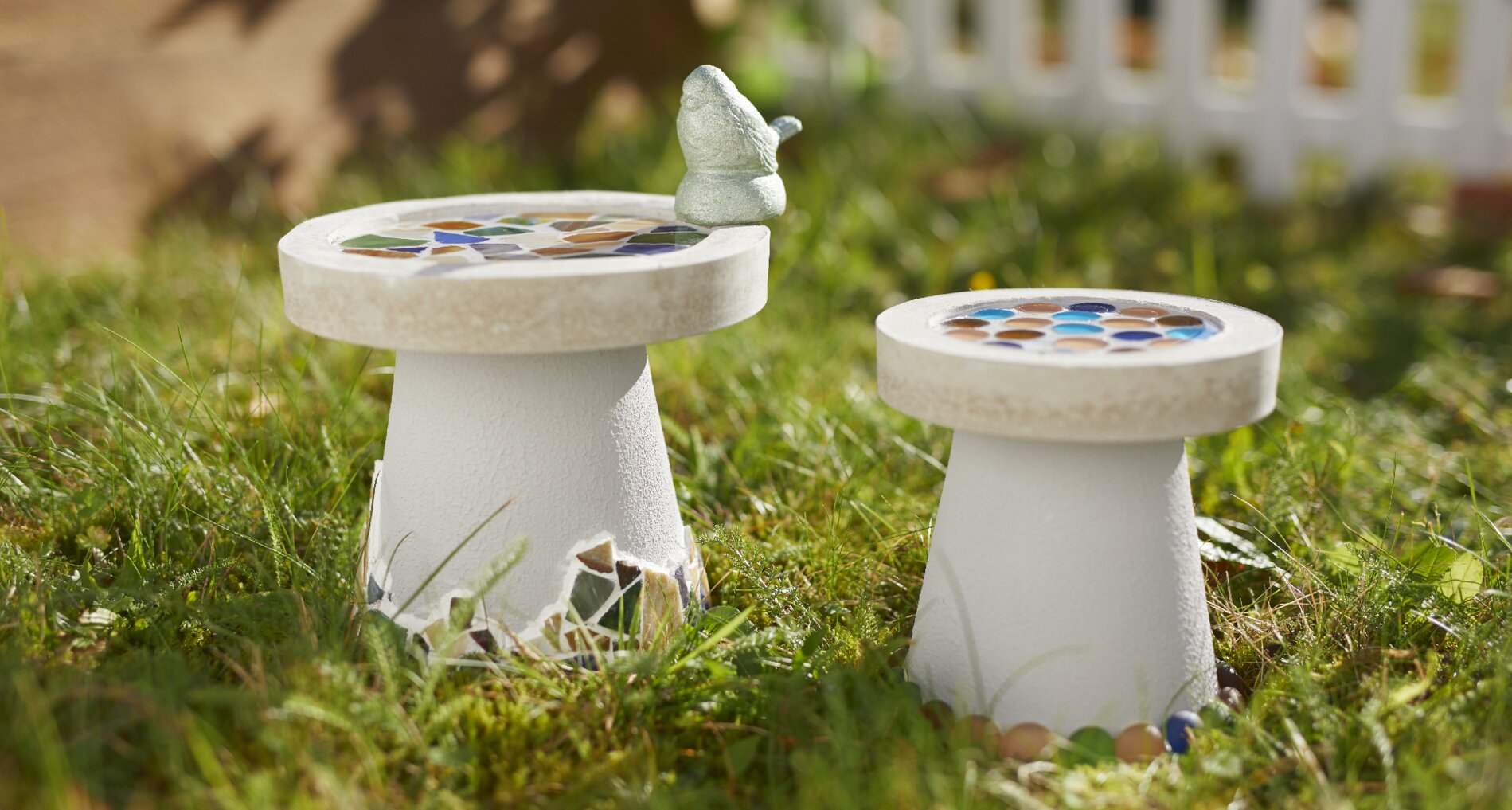 Damit die Vogeltränke wasserdicht ist und auch genutzt werden kann, überziehen Sie die Mosaikfläche mit Gießharz. Nutzen Sie die