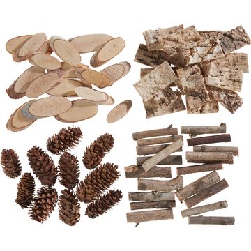 Cut off individual branches of the VBS thuja garland and stick them between the fir wreath using hot glue. Then insert the candle plugs into the wreath. Place the candles of your choice on top. You can then decorate the wreath as you wish. We have natural decorations, scatter decoration and christmas balls glued them to the wreath with hot glue.