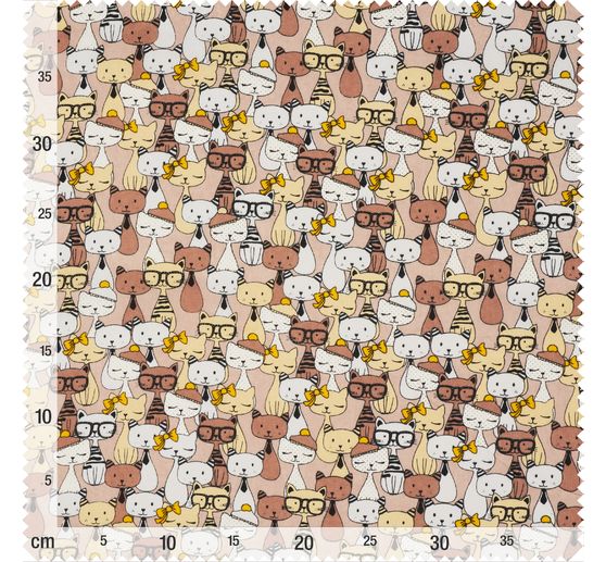 A great Cotton fabric "Funny cats" with a width of about 140 cm. A fabrics by the meter with a digital print. The material is 100% cotton, with a fabric weight of approx. 120 g/m² and a motif size of approx. 2 to 5 cm as an "all over" motif. A light quality that you can sew well with a standard sewing machine. The fabric is washable at 30 ° C delicate wash.