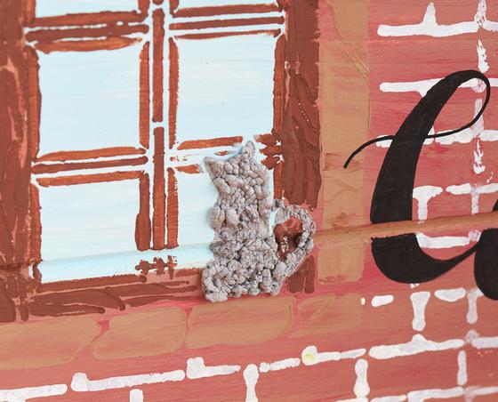 Use stencilling cream for the cat. This is a special, thick paint that foams up when heated and visibly lifts. Carefully dab the creame through the stencil onto the desired area.