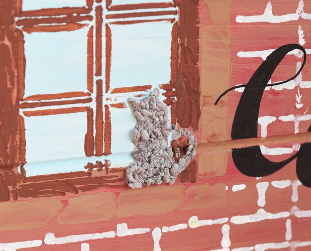 Start by priming the wooden panel with a paint sponge and the craft paints in antique red and gray-brown. Gently dab the paints onto the surface instead of painting. This creates a slightly irregular, lively texture that gives the wood a rustic character.