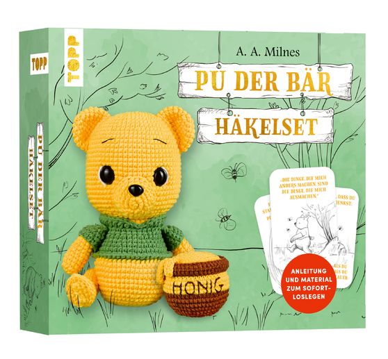 With the high-quality yarn made from 63% cotton, 37% polyacrylic, the matching crochet hook and the soft filling cotton, your Pu der Bär will not only be an eye-catcher, but also a cuddly friend. The included cards with quotes from Pu give your project a personal touch and inspire with wisdom that touches the heart.