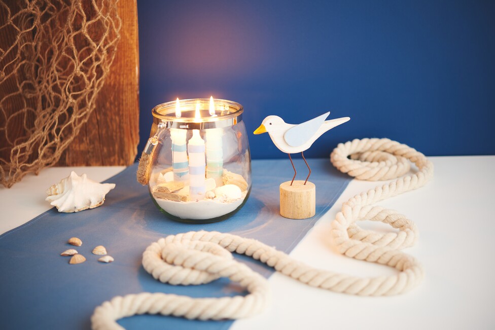 With this maritime craft idea, you can bring the feeling of the beach, sea and vacation right into your home. Using candles, colored sand, shells and a lantern glass, you can create an atmospheric maritime-style decoration in no time at all. The idea is perfect as a table decoration, gift or as a small highlight on the balcony or terrace. Best of all, it's easy to make and is also ideal for beginners.