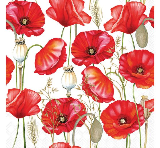 Awaken your creativity with the napkin "Poppy over White"! This beautifully designed napkin with its vibrant poppy motif will bring a breath of fresh air to your projects and decorations. Printed on one side, the 33 x 33 cm napkin is perfect for the napkin or decoupage technique. Transform furniture and drawers into unique works of art by embellishing them with this napkin. With a suitable adhesive and protective varnish, you can make your creations long-lasting. Whether you're an experienced crafter or just starting out, this napkin will inspire new, creative ideas. Bring spring into your home and let your imagination run wild! With a pack of 20 pieces, you have enough material for numerous projects. Order now and immerse yourself in a world of creativity!