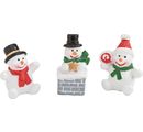 This charming trio of detailed polyresin snowmen will add a festive touch to your creative projects. Each snowman is different: the cheerful snowman with open arms is snuggled up in his red scarf and top hat, ready to welcome you. His playful friend with the red hat and lollipop adds a dash of fun to your decorations, while the third snowman with a golden star peers out from a snowy chimney and brightens up your winter wonderland.
