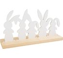 The elegant combination of white-painted bunny figures and a natural wooden base gives your living space a natural charm. With a height of 17 cm and a length of 30 cm, this decoration fits perfectly on any table or shelf and adds a stylish accent.