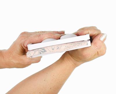 3.) Den erwärmten Zuschnitt zwischen die Thikas Formen geben und 10 Sekunden zusammen drücken.
