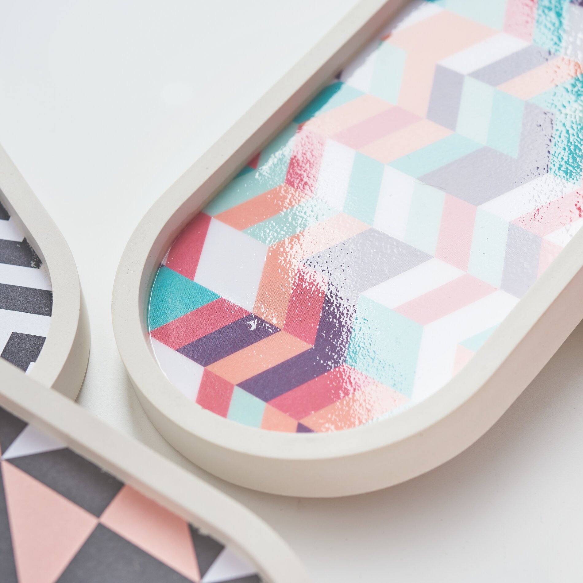 Commence par préparer ton modèle en reportant la forme souhaitée sur du carton et en la découpant. Place le modèle dans le moule avec le motif vers le bas. Cette étape assure un résultat propre et garantit que le design de ta coupe à bijoux sera bien mis en valeur.