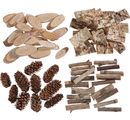 Un fantastique assortiment de pommes de pin, écorces d'arbre, rondelles d'écorces et petits branchages véritables pour décorer compositions florales, tables, couronnes de l'Avent, etc.