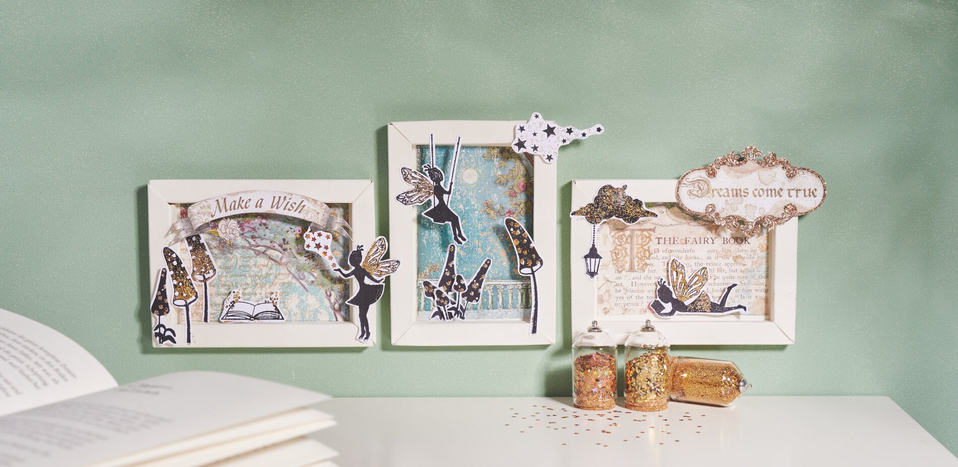 Disposez les différents motifs sur le cadre photo et collez-les ensuite à l'intérieur et sur le Little Papier Frame à l'aide de colle de bricolage ou de pastilles adhésives 3D.