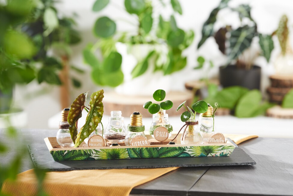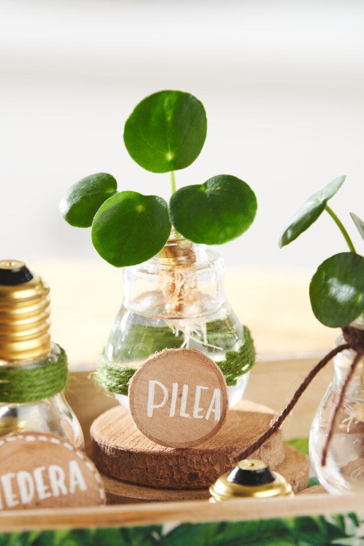 Leg de gloeilampen op de tray: open gloeilampen gevuld met stekken en andere gesloten gloeilampen.