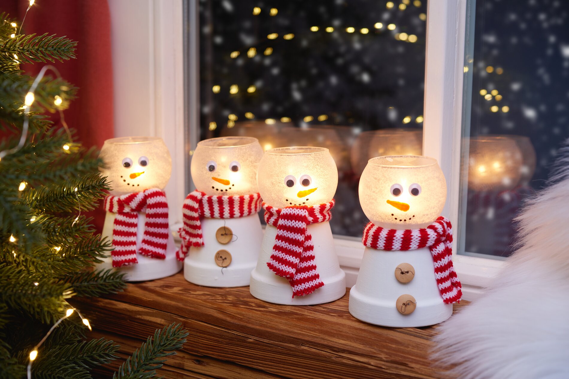 Donnez à votre maison un charme hivernal en créant vos propres bonshommes de neige lumineux avec des verres à bougie et des pots en terre cuite ! Cette fiche créative facile à réaliser vous montre comment, en quelques gestes et avec un peu de créativité, vous pouvez créer une décoration magique pour la saison froide.