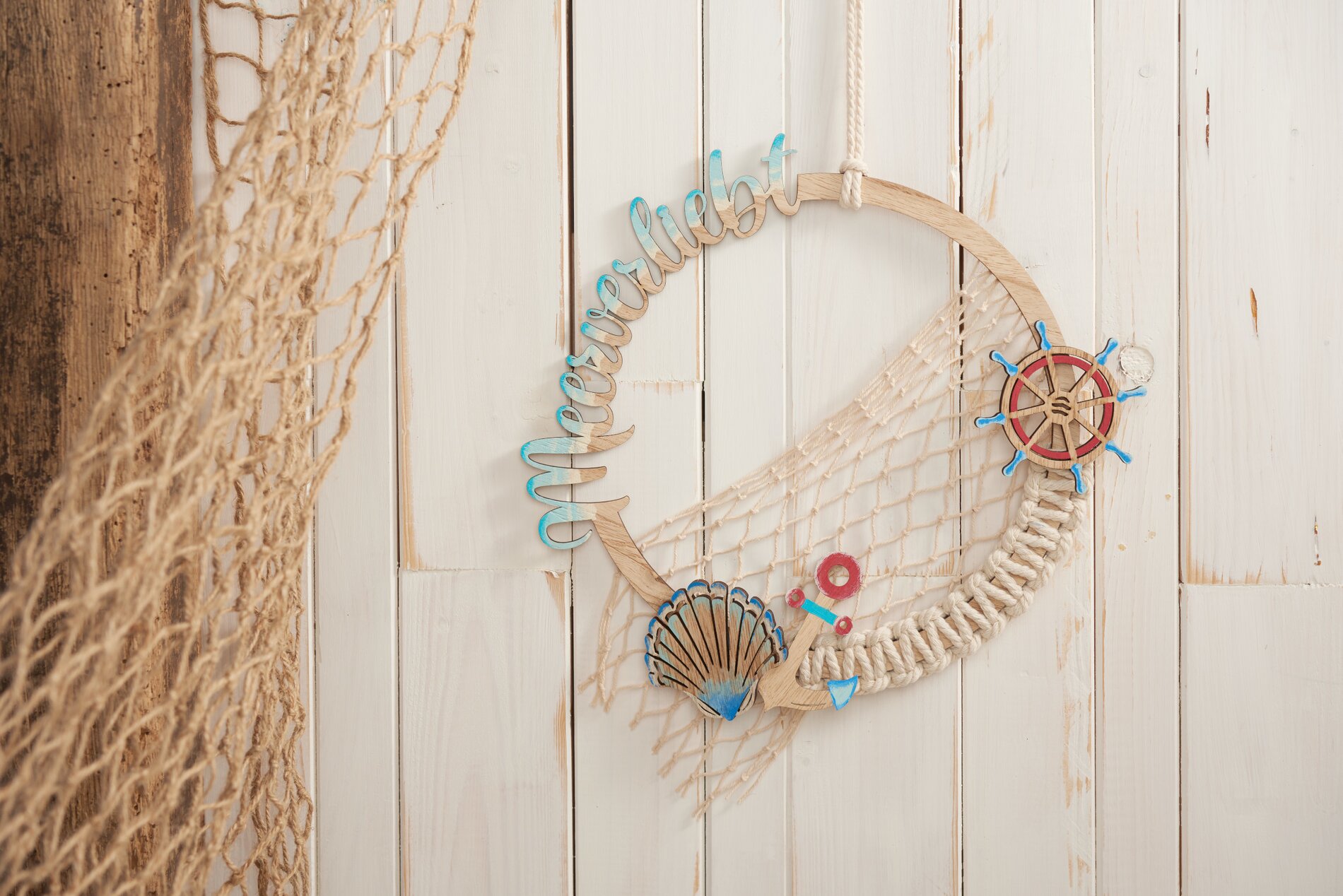 Eén deel van de houten ring wordt vastgemaakt met een macramé-kruisknoop: