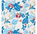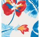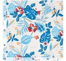 Ontdek de exotische schoonheid van de Katoenen poplin stof "Tropical Blue" en laat je inspireren door de levendige tropische bladeren en bloemen in blauw, lichtblauw en rood! Deze motiefstof op een witte achtergrond brengt een frisse wind door je naaiprojecten en is perfect voor luchtige zomerkleding en accessoires.