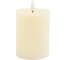 De hoogwaardige LED echte waskaars heeft een hoogte van ca. 10 cm en een Ø van ca. 7,5 cm. Hij is voorzien van een sfeervol flikkerend licht en een timerfunctie. Hierdoor kan hij 6 uur branden en 18 uur automatisch uitschakelen. De kaars werkt op 2 x AA-batterijen (niet inbegrepen).