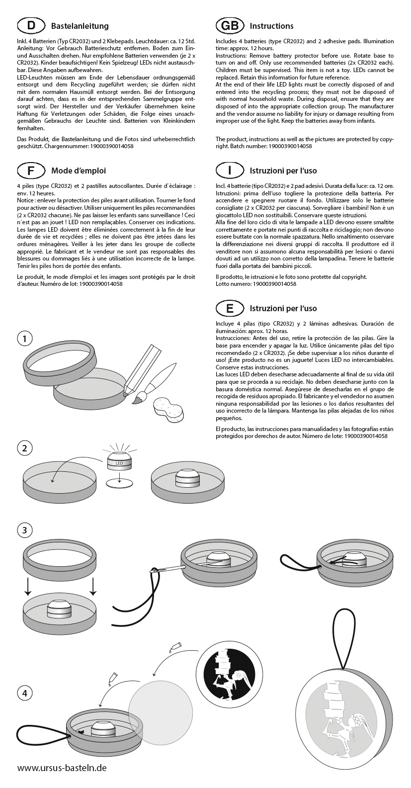 2 LED's, incl. 4 batterijen en 2 zelfklevende pads