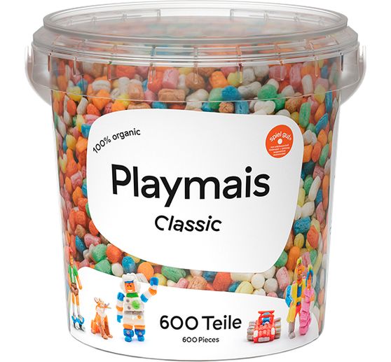 PlayMais is een natuurlijk, klimaatvriendelijk product dat rechtstreeks van de boerderij komt. Het is vrij van schadelijke chemicaliën en plastic, gemaakt van maïs en belooft puur speel- en knutselplezier. De praktische emmer is hervulbaar en zorgt ervoor dat het knutselplezier nooit ophoudt. Een spons en knutselmes zijn ook inbegrepen om de creaties nog makkelijker te maken.