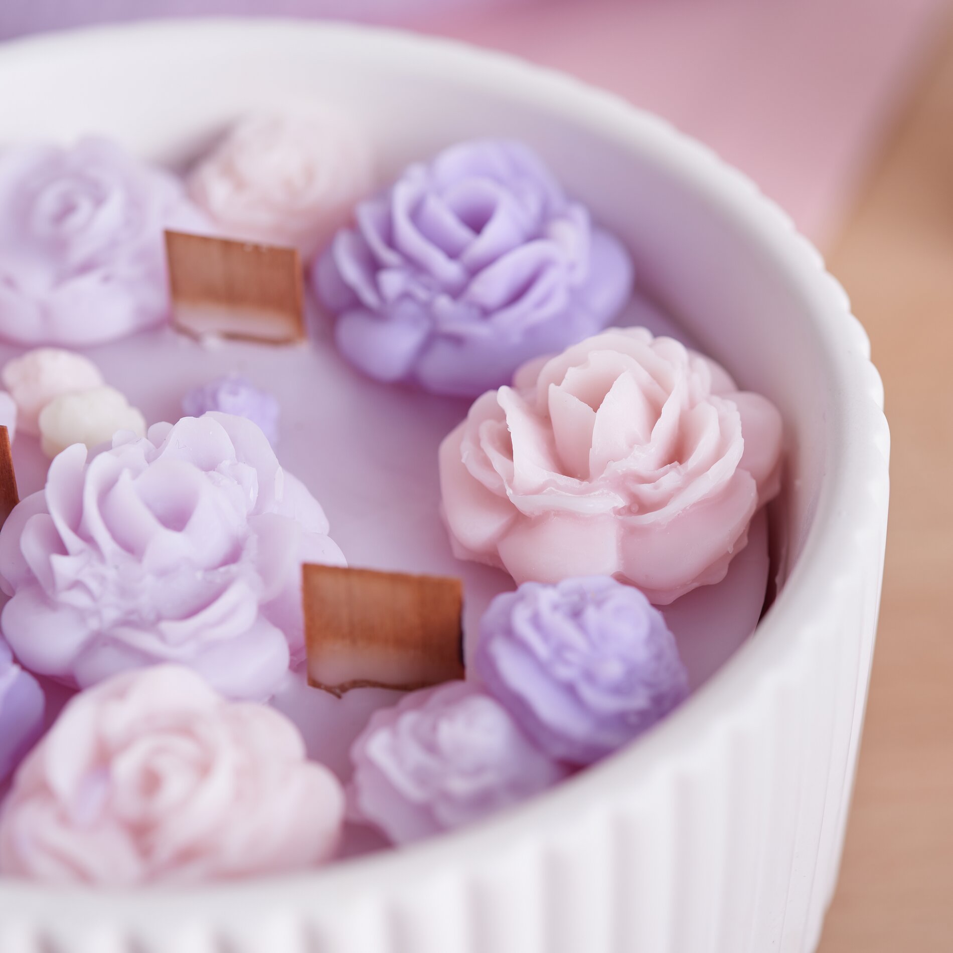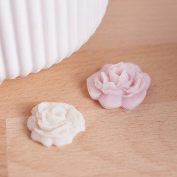 Vul de kom & maak rozenblaadjes van was Vul nu voorzichtig de kom met de vloeibare was zodat de lonten stevig in de kom blijven zitten. Smelt nog wat was en giet het in een silicoonvorm voor rozenblaadjes. Na ongeveer 10 minuten kun je de waselementen voorzichtig verwijderen. Zodra ze helemaal zijn uitgehard, plaats je ze naar wens op je kaarsenkom.