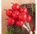 De rode appels zijn perfect voor het maken van mooie en decoratieve kransen, arrangementen of tafeldecoraties. De draad op de appel maakt het snel en gemakkelijk om hem op een krans van piepschuim of stro te zetten. Dicht opeengepakt vormen ze een echte blikvanger. De appels schitteren ook in kleinere groepen in tafelopstellingen.