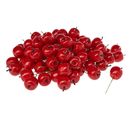80 decoratieve appels op draad, VBS XXL pakket. De appels zijn rood en hebben een Ø van ongeveer 3,5 cm. Deappelsteel is ongeveer 1 cm lang. De draad op de appel is ongeveer 5 cm lang.