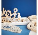 Het anker, dat vakkundig in jutelint is gewikkeld, geeft de letters een authentiek tintje. Laat je creativiteit de vrije loop: of je nu wilt schilderen, plakken of decoreren - de mogelijkheden zijn eindeloos. Gebruik de servet- of decoupagetechniek om het anker een heel persoonlijk tintje te geven.
