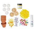 De complete set bevat het materiaal dat nodig is om 5 schattige kuikentjes te maken. Je hebt ook wat hete lijm en een penseel nodig. De bijgevoegde instructies helpen je stap-voor-stap en met talloze foto's om je kuikens gemakkelijk te maken. De afgewerkte figuurtjes zijn ongeveer 10 cm hoog.